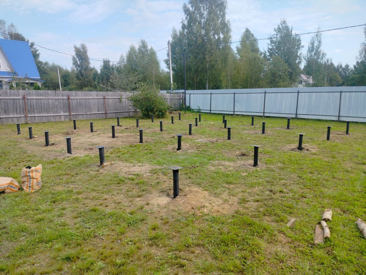 Компания "Сваекрутов" успешно завершила проект по строительству фундамента на винтовых сваях для будущего дома размером 10х8 метров. Проект выполнялся на участке заказчика в городе Талдом, Московской области. Главной задачей было создание надежного и прочного основания, на котором в дальнейшем будет возводиться дом. Для монтажа использовались винтовые сваи диаметром 108 мм и длиной 2,5 метра. На каждую сваю был установлен оголовок, обеспечивающий надежное крепление для последующей обвязки фундамента.