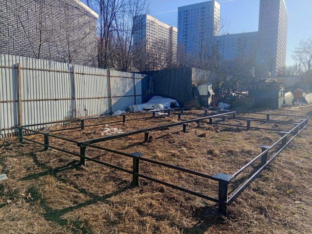 Кроме того, мы заранее позаботились об эстетическом виде и удобстве дальнейшего строительства. По всему внешнему периметру конструкции наши мастера выполнили обварку в два ряда профильной трубой размером 20 на 40 миллиметров. Такая обрешетка служит идеальным основанием для последующего монтажа цокольного сайдинга, избавляя владельца дома от необходимости проводить дополнительные сварочные работы в будущем.